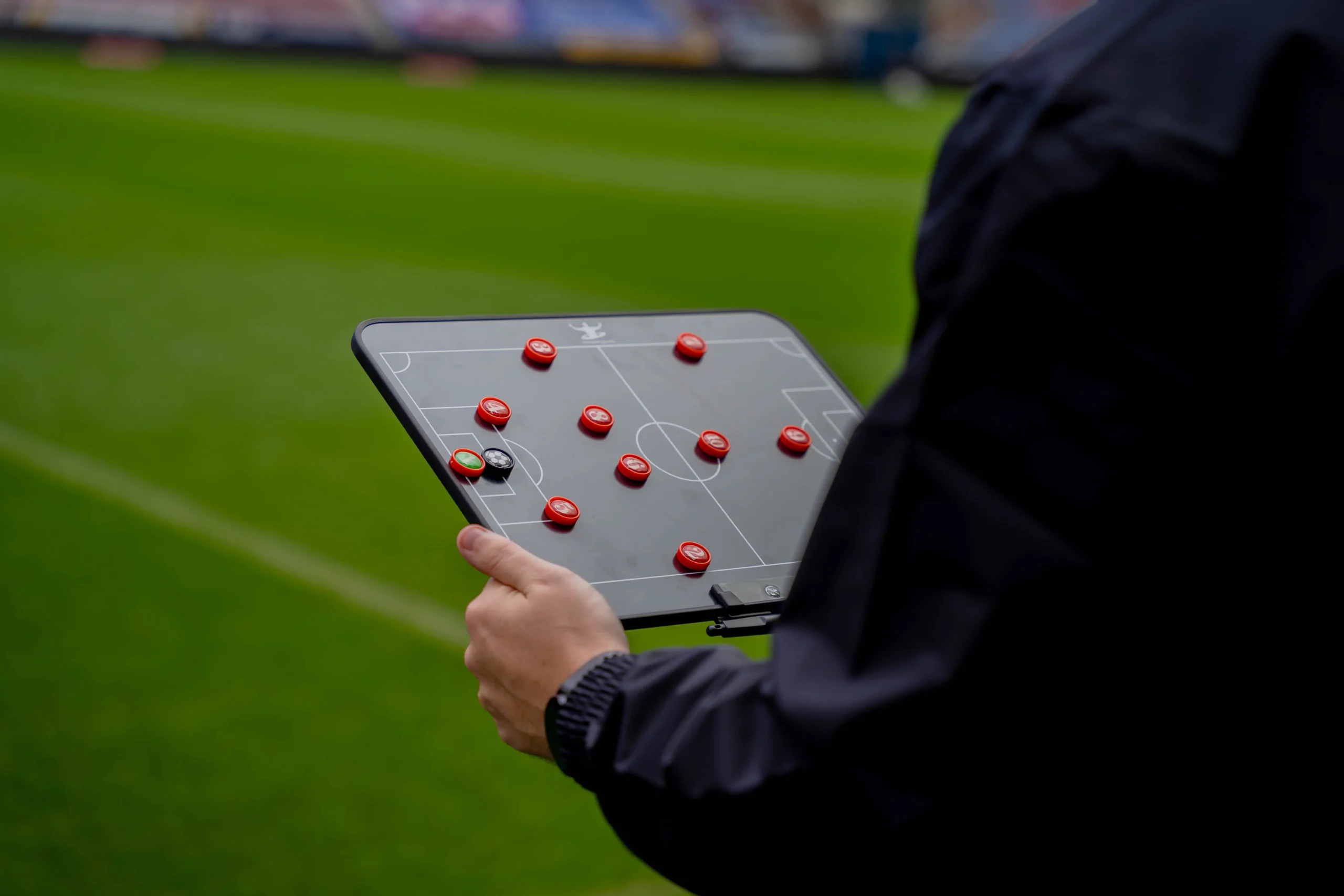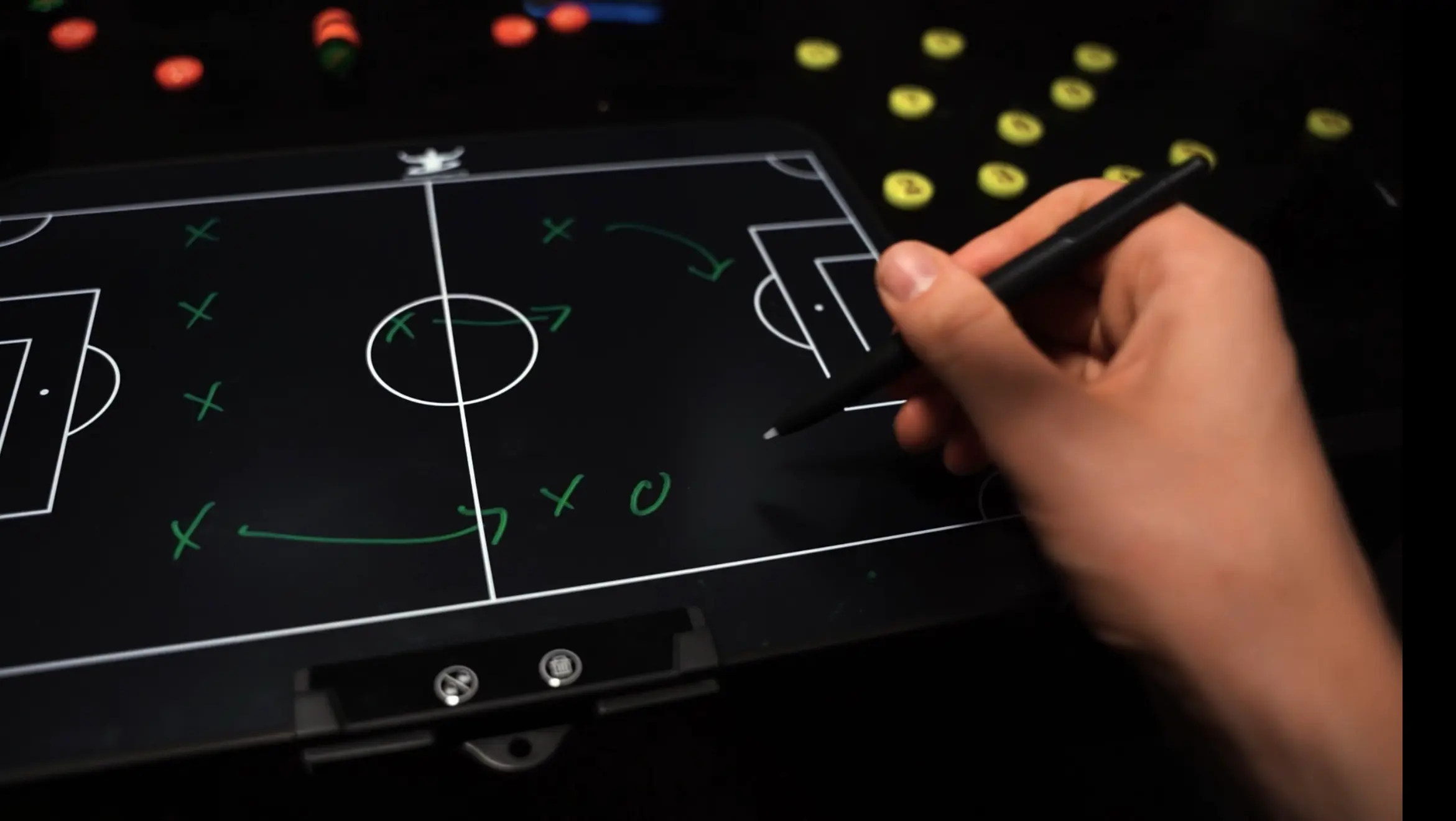 A 16-inch 2-in-1 board combining classic whiteboard flexibility with an electric tactical display. Perfect for training, changing rooms, or sidelines.